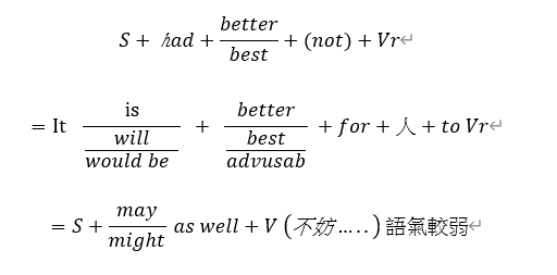 2. had better/best + have + Vpp (=表過去 ) 最好 表示所指的動作沒有成為事實