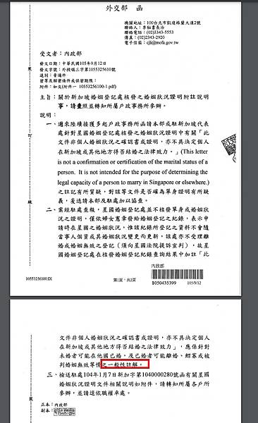 另一篇:【法律/公證】我國人 和 新加坡人結婚 (單身證明文件、居留簽證、居留證)