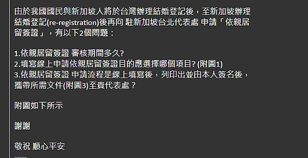 (這是我發email詢問,不過我覺得我國駐外單位回答的是 蠻....呵呵 )